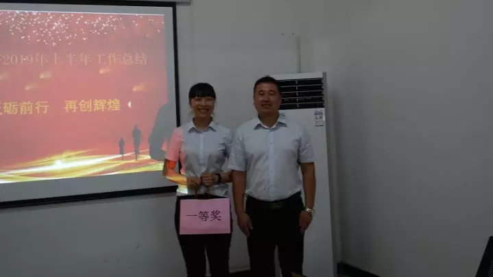 匯報(bào)完畢后,由參會(huì)人員匿名評(píng)選出匯報(bào)最好的前四名,由總經(jīng)理代進(jìn)為一等獎(jiǎng)獲得者頒發(fā)禮品,公司行政副總張海波為二等獎(jiǎng)獲得者頒獎(jiǎng),會(huì)議圓滿落幕。